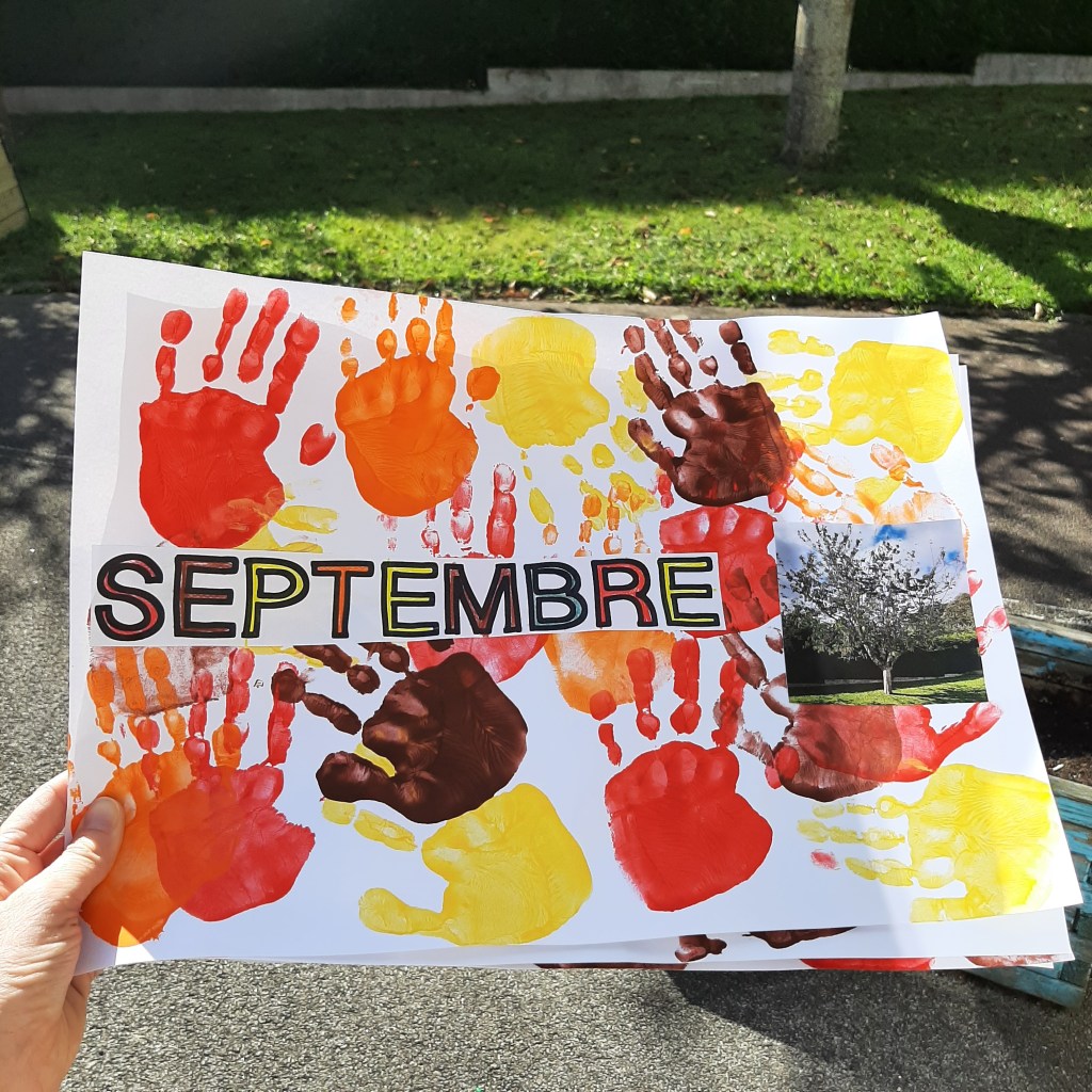 . Une affiche aux couleurs de l’automne avec les mains d’élèves.