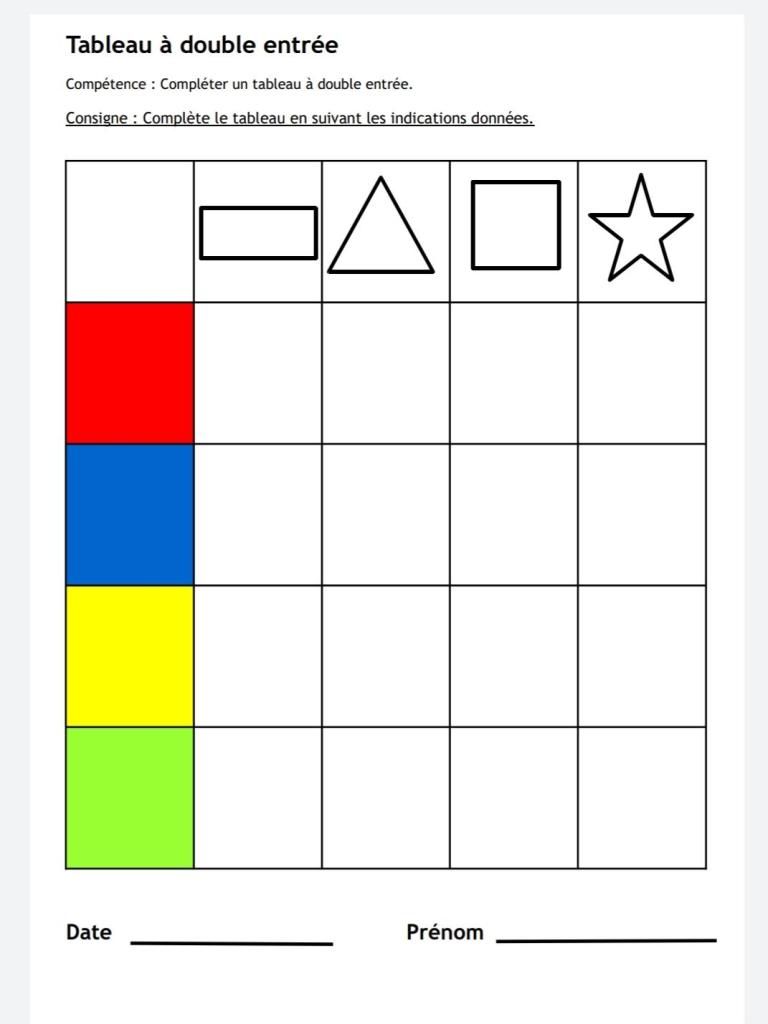 Voici une fiche toute simple pour mes GS en cette fin d’année.Ils doivent compléter le tableau à double entrée.